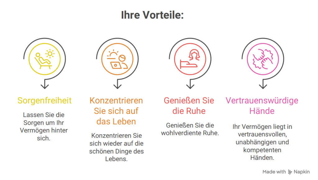 Gewinnen Sie Zeit, Klarheit und Ruhe – mit der Gewissheit, dass Ihr Vermögen unabhängig, kompetent und transparent begleitet wird.